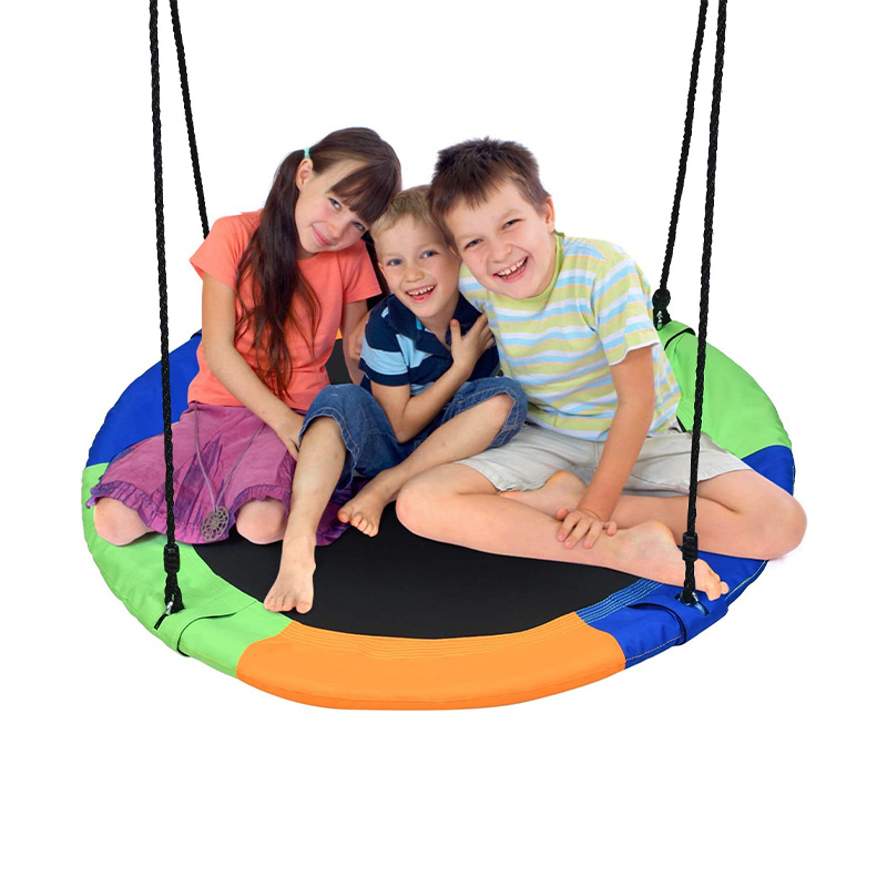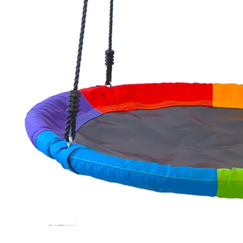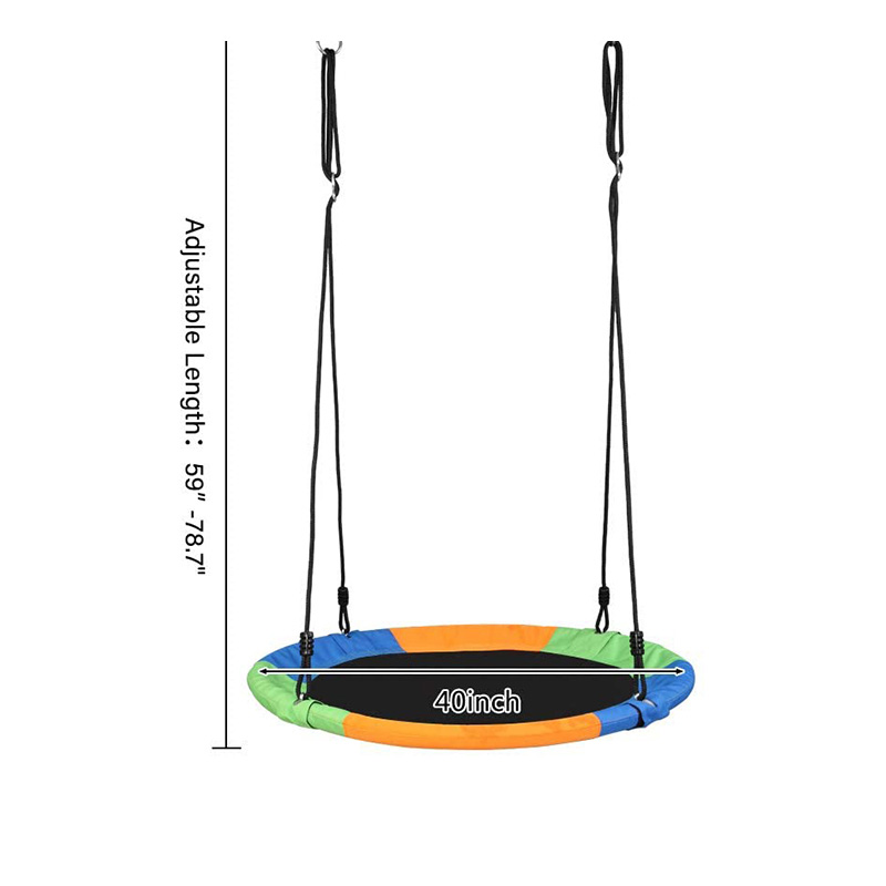 تستخدم أرجوحة الصحن العملاقة هذه مقاس 40 بوصة نسيج أكسفورد 900D/600D المقاوم للماء والعفن والتمزق والأشعة فوق البنفسجية للحفاظ على الألوان النابضة بالحياة حتى بعد التعرض لفترة طويلة. تخلق ألواح قماش أكسفورد متعددة الألوان ألوانًا أكثر ثراءً، مع خياطة ثلاثية معززة وحبال مضفرة سميكة مقاس 10 مم تدعم بسهولة طفلين أو شخص بالغ وطفل واحد. يمكن تركيبه أو إزالته بسرعة خلال 10 دقائق لاستخدامه في الساحات الخلفية أو مواقع التخييم. يسمح سطح التأرجح الفسيح والمسطح بالجلوس والاستلقاء، مع إطار إسفنجي ناعم يضمن الراحة والأمان أثناء اللعب.