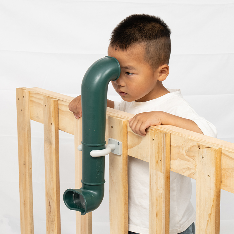 يسمح نظام العدسات الثابتة المدمج بالمشاهدة الرأسية والأفقية دون تعديلات. يمكن للأطفال استكشاف المناطق المرتفعة أو المخفية من خلال العدسات، مما يثير الفضول في بيوت الأشجار وإطارات التسلق والسيناريوهات التفاعلية الأخرى.